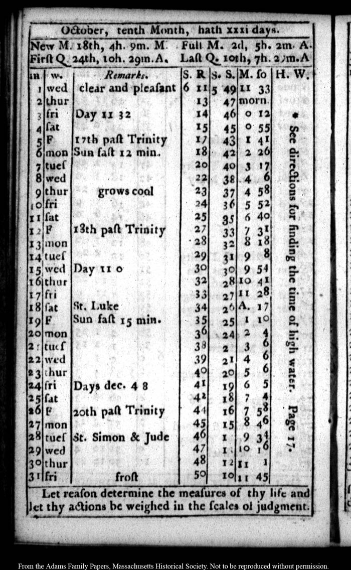 John Quincy Adams diary 25 (almanac), 1800, page 14