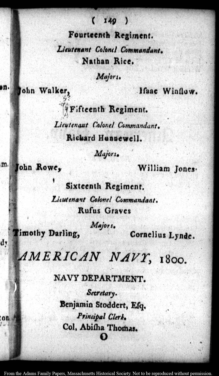 John Quincy Adams diary 25 (almanac), 1800, page 149