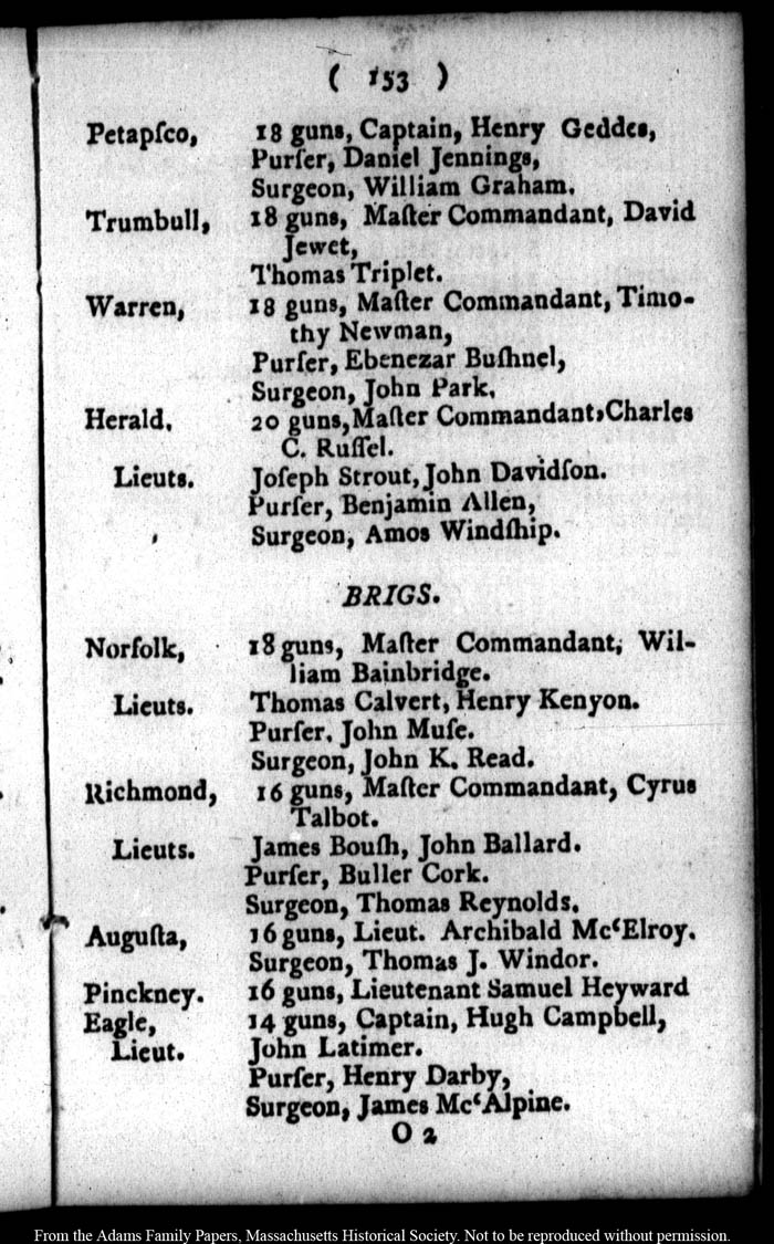 John Quincy Adams diary 25 (almanac), 1800, page 153