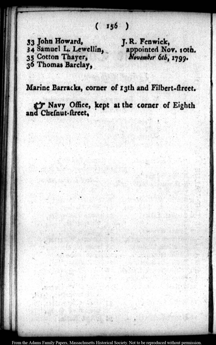 John Quincy Adams diary 25 (almanac), 1800, page 156