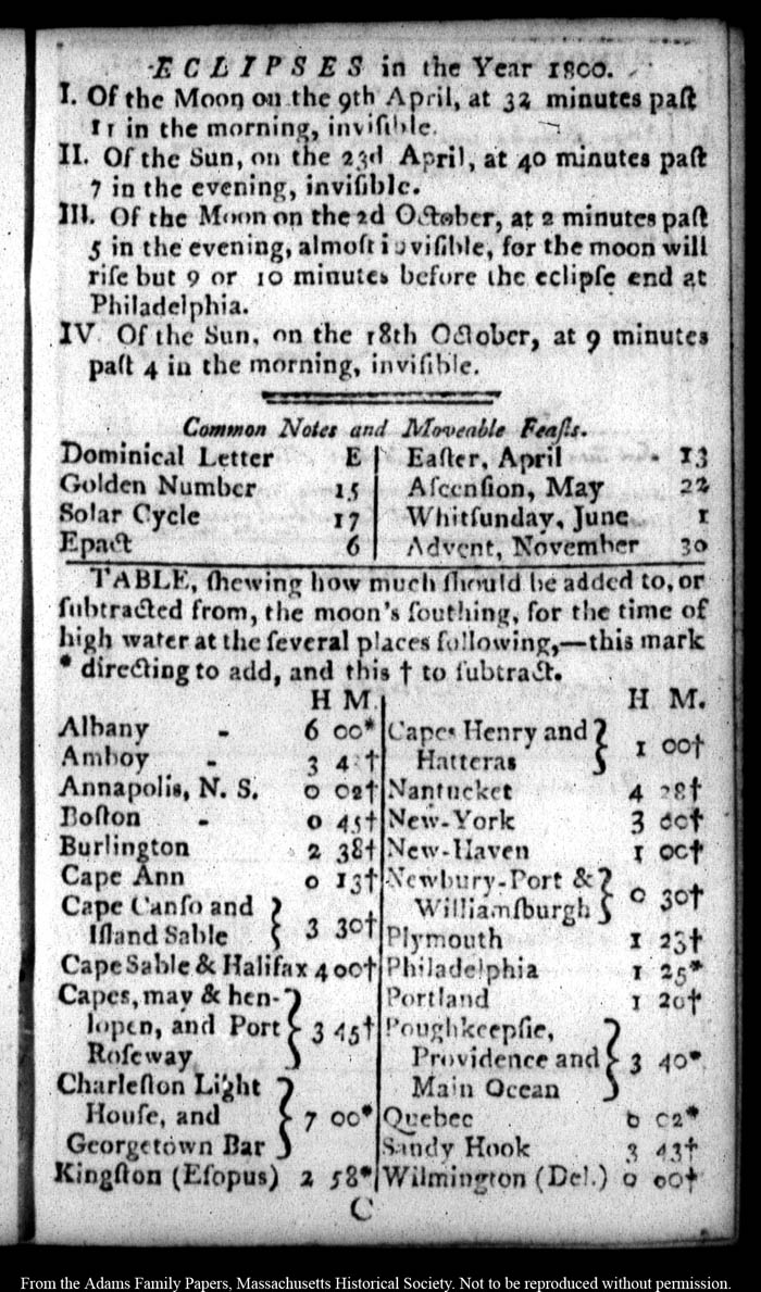 John Quincy Adams diary 25 (almanac), 1800, page 17