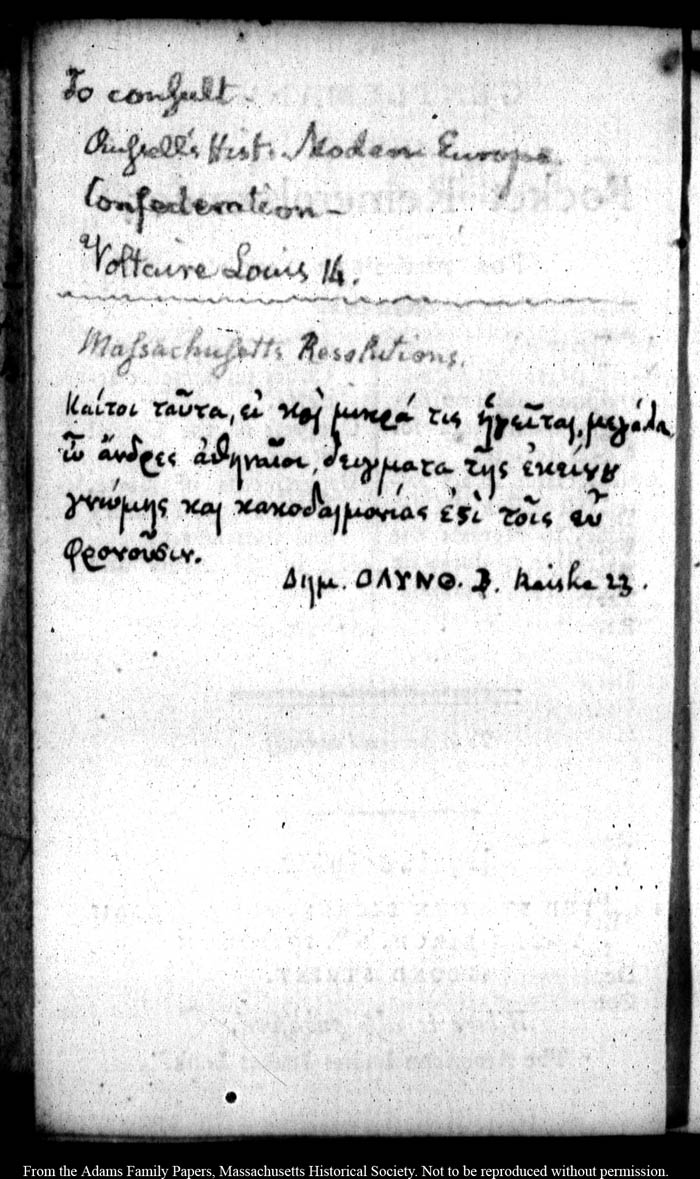 [note: John Quincy Adams added manuscript notations and figures to the blank