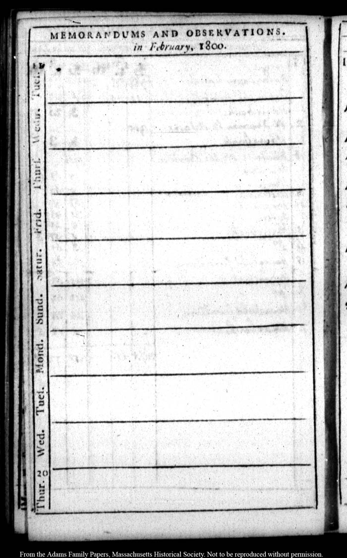 John Quincy Adams diary 25 (almanac), 1800, page 26
