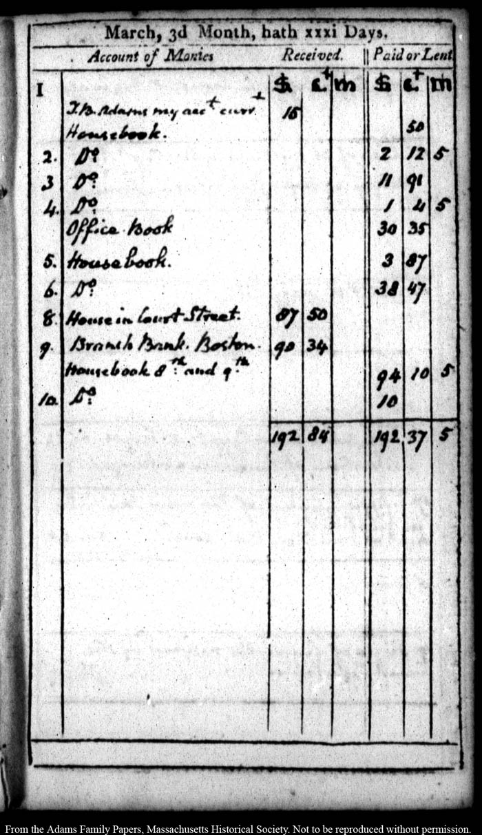 John Quincy Adams diary 25 (almanac), 1800, page 31