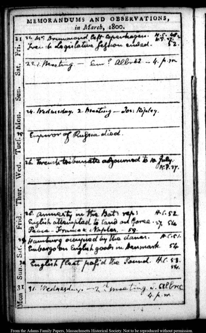 John Quincy Adams diary 25 (almanac), 1800, page 34