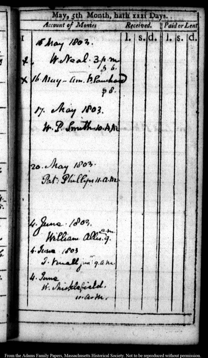 John Quincy Adams diary 25 (almanac), 1800, page 43