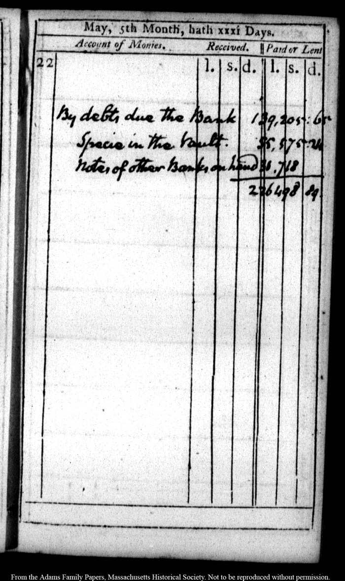 [note: John Quincy Adams added manuscript notations and figures to the blank