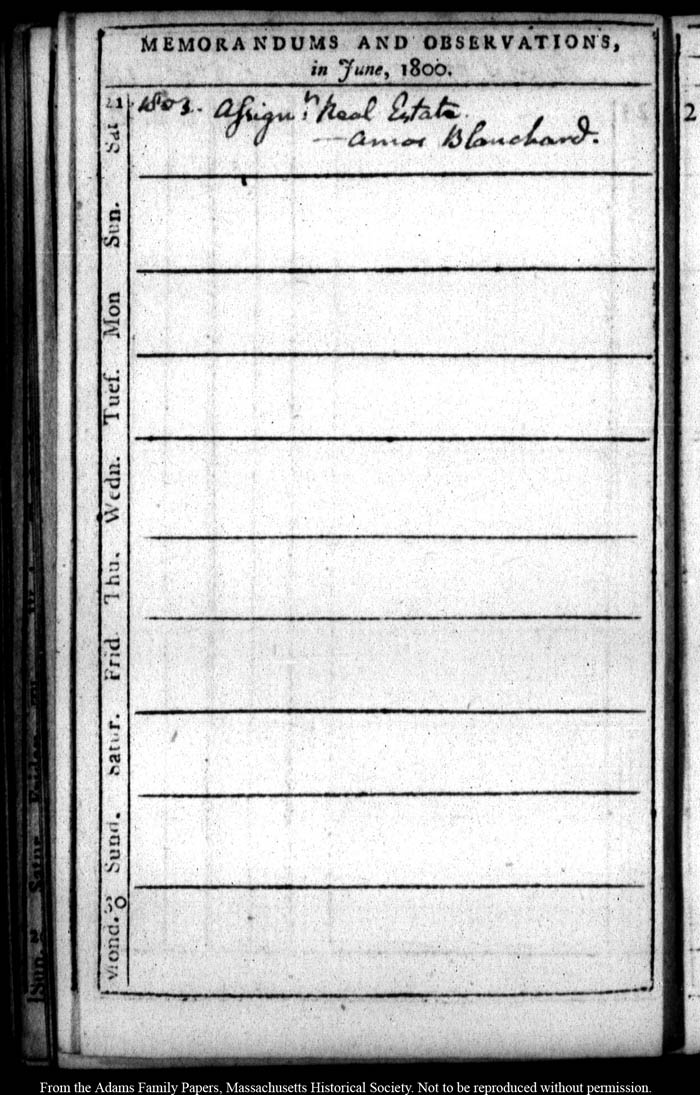 John Quincy Adams diary 25 (almanac), 1800, page 52
