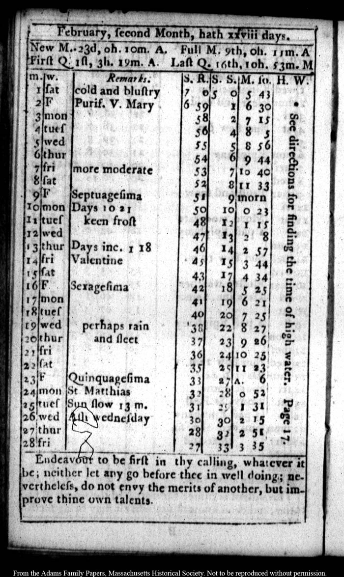 John Quincy Adams diary 25 (almanac), 1800, page 6