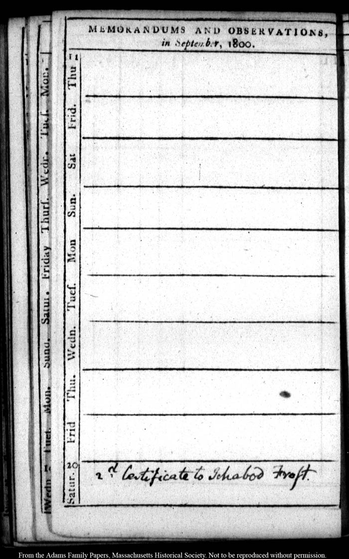 John Quincy Adams diary 25 (almanac), 1800, page 68