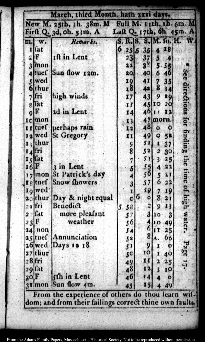 John Quincy Adams diary 25 (almanac), 1800, page 7