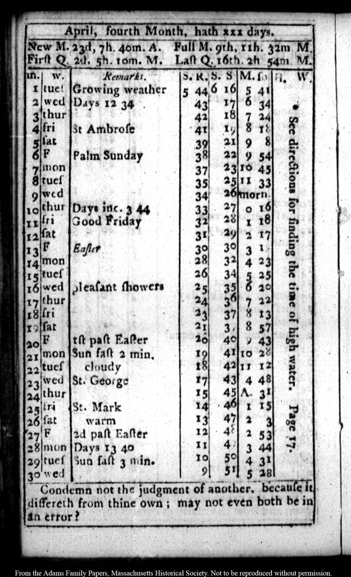 John Quincy Adams diary 25 (almanac), 1800, page 8