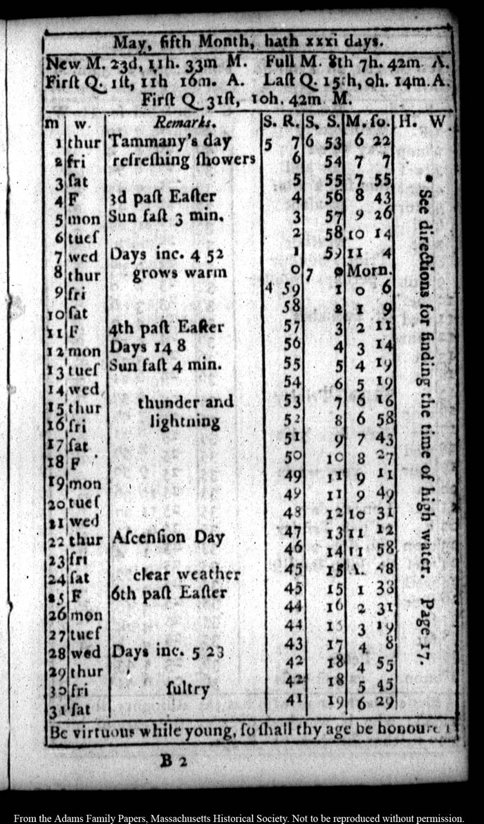 John Quincy Adams diary 25 (almanac), 1800, page 9