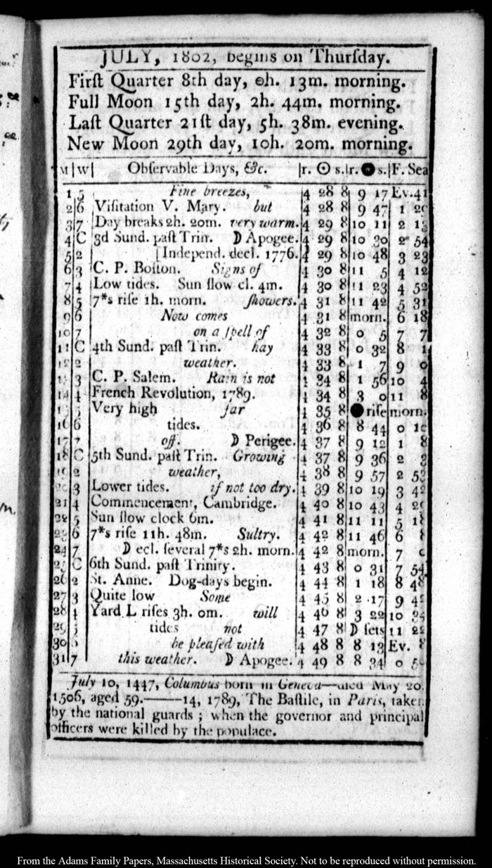John Quincy Adams diary 26 (almanac), 1802, page 17