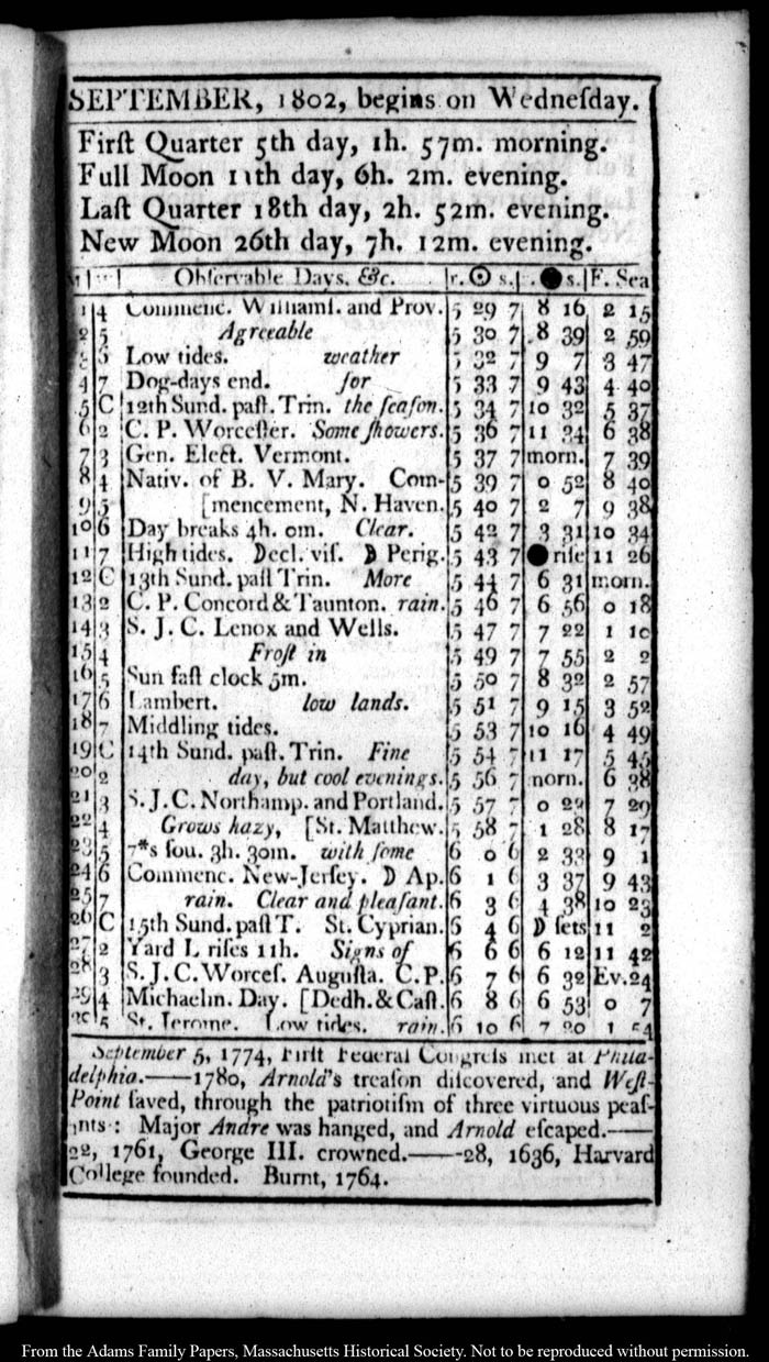 John Quincy Adams diary 26 (almanac), 1802, page 21