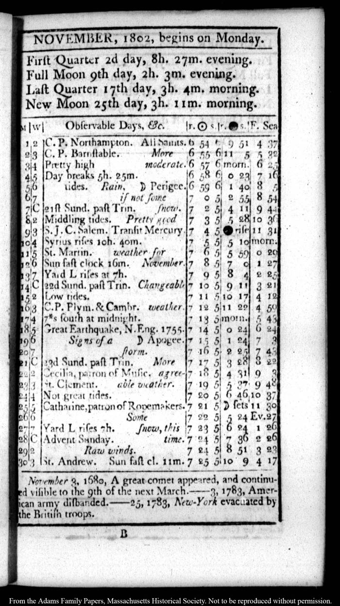 John Quincy Adams diary 26 (almanac), 1802, page 25