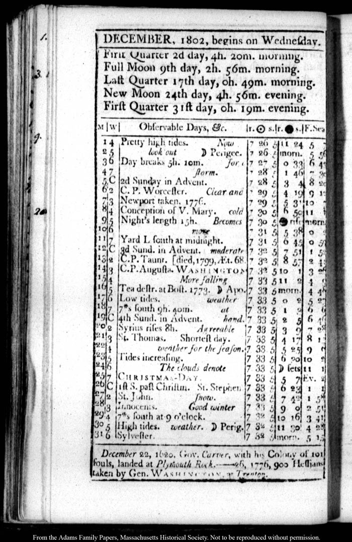 John Quincy Adams diary 26 (almanac), 1802, page 26