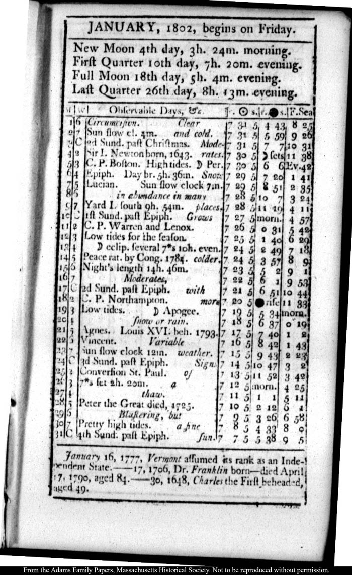 John Quincy Adams diary 26 (almanac), 1802, page 5