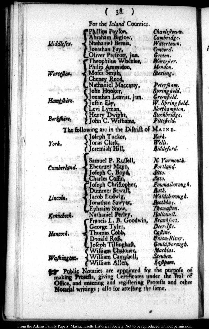 [note: Published page of The Massachusetts Register and United States