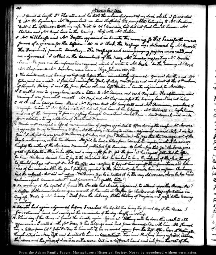 John Quincy Adams diary 27, 1 January 1803 - 4 August 1809, page 108