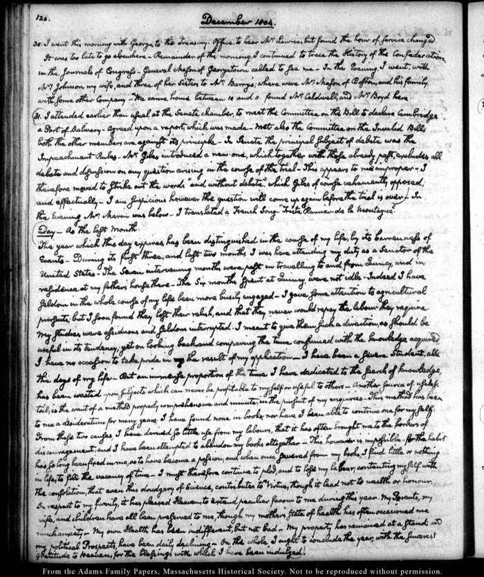 View full, authoritative transcriptions with page images of the diaries at John Quincy Adams Digital Diary part of the Primary Source Cooperative at the MHS.