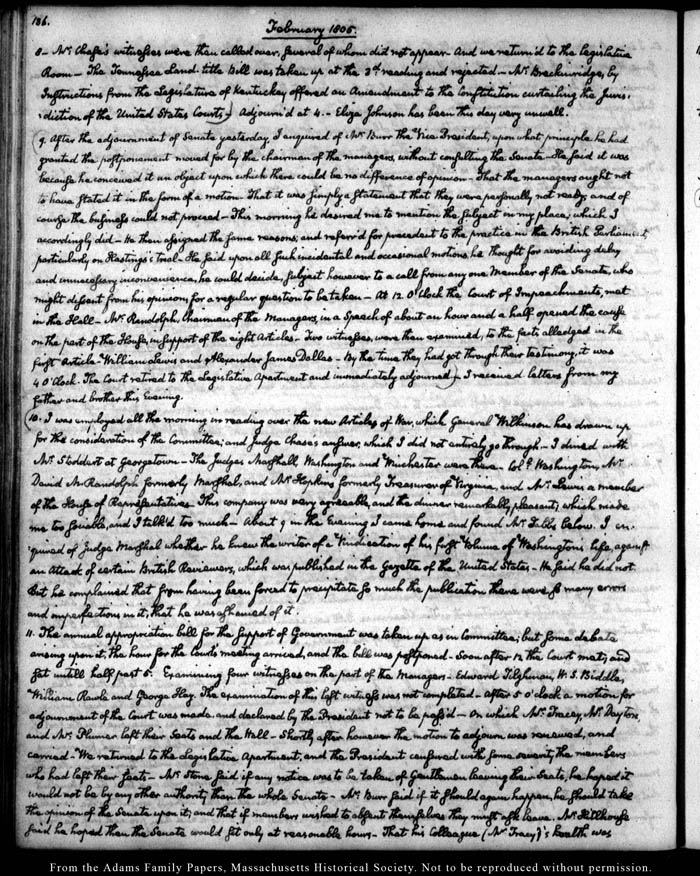 View full, authoritative transcriptions with page images of the diaries at John Quincy Adams Digital Diary part of the Primary Source Cooperative at the MHS.