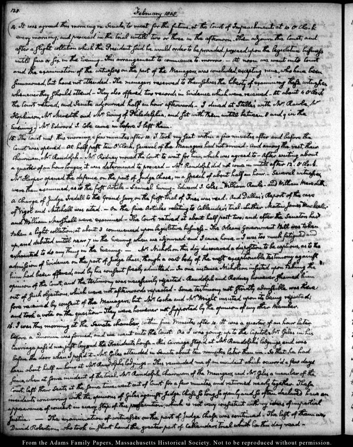 View full, authoritative transcriptions with page images of the diaries at John Quincy Adams Digital Diary part of the Primary Source Cooperative at the MHS.