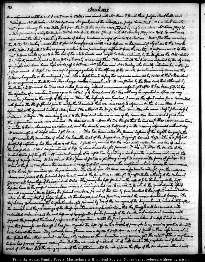 View full, authoritative transcriptions with page images of the diaries at John Quincy Adams Digital Diary part of the Primary Source Cooperative at the MHS.
