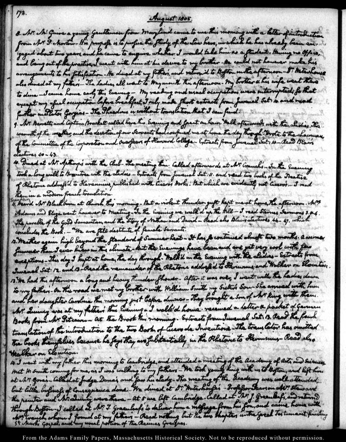 John Quincy Adams diary 27, 1 January 1803 - 4 August 1809, page 172
