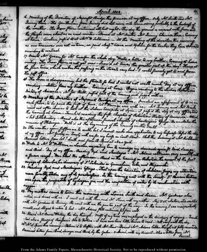 John Quincy Adams diary 27, 1 January 1803 - 4 August 1809, page 21