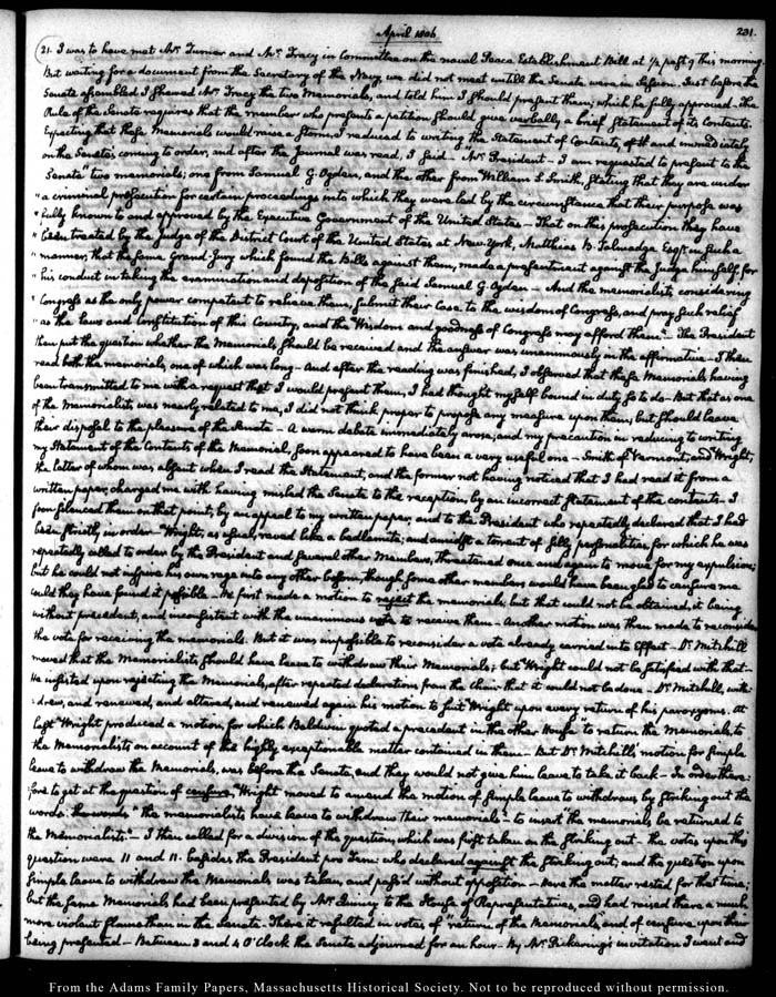 John Quincy Adams diary 27, 1 January 1803 - 4 August 1809, page 231