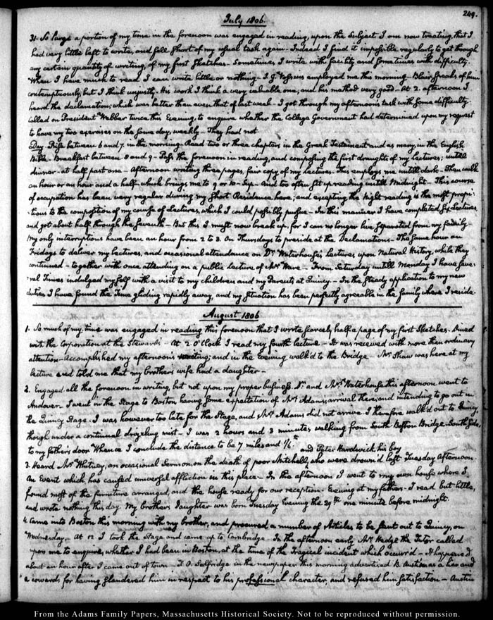 John Quincy Adams diary 27, 1 January 1803 - 4 August 1809, page 249