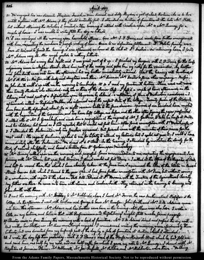 View full, authoritative transcriptions with page images of the diaries at John Quincy Adams Digital Diary part of the Primary Source Cooperative at the MHS.