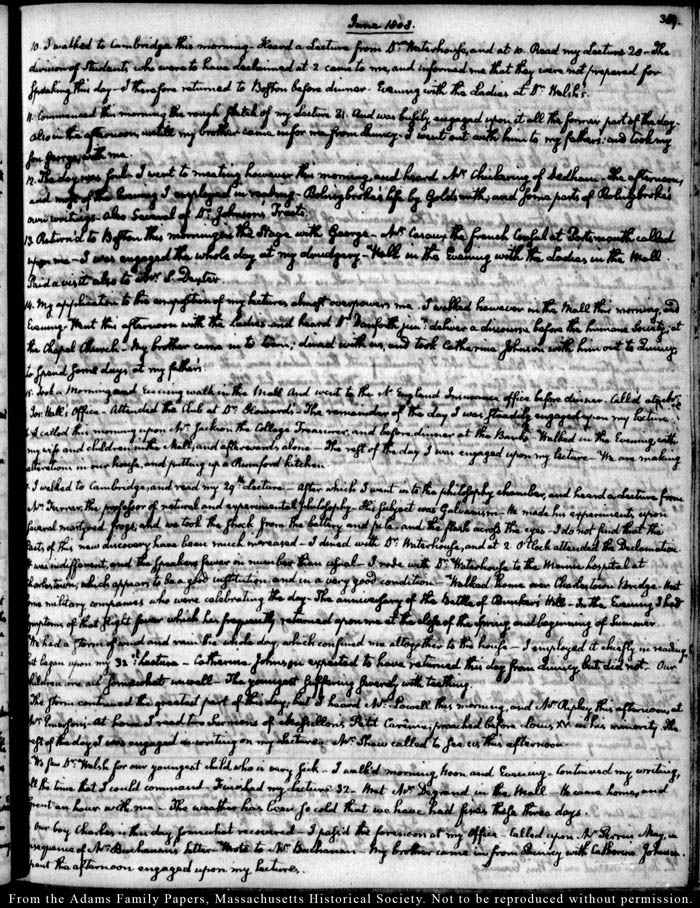 View full, authoritative transcriptions with page images of the diaries at John Quincy Adams Digital Diary part of the Primary Source Cooperative at the MHS.