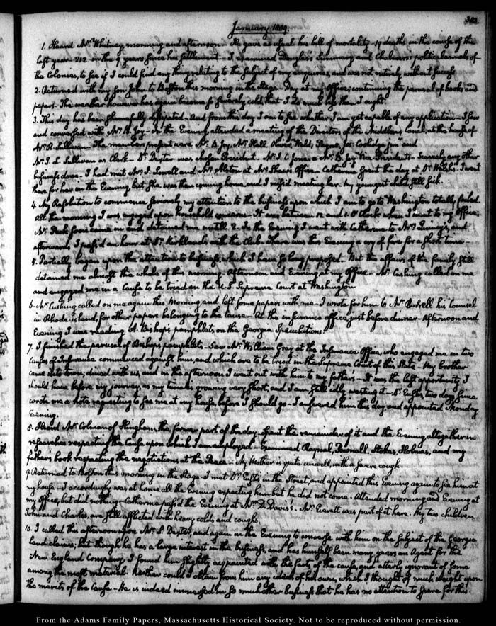 View full, authoritative transcriptions with page images of the diaries at John Quincy Adams Digital Diary part of the Primary Source Cooperative at the MHS.