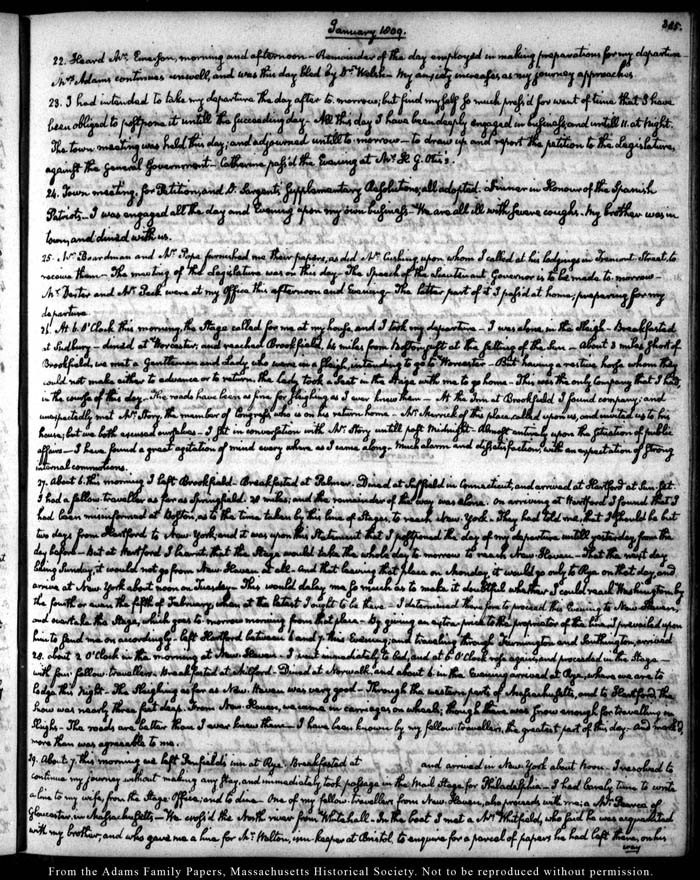 View full, authoritative transcriptions with page images of the diaries at John Quincy Adams Digital Diary part of the Primary Source Cooperative at the MHS.