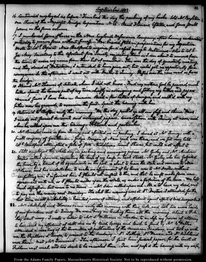 View full, authoritative transcriptions with page images of the diaries at John Quincy Adams Digital Diary part of the Primary Source Cooperative at the MHS.