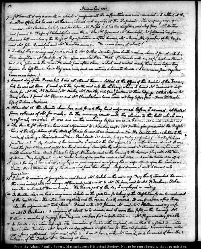 John Quincy Adams diary 27, 1 January 1803 - 4 August 1809, page 52