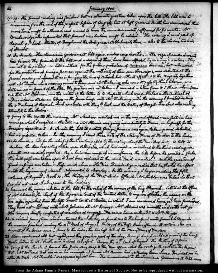 John Quincy Adams diary 27, 1 January 1803 - 4 August 1809, page 64