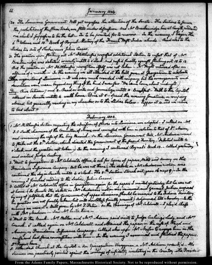 John Quincy Adams diary 27, 1 January 1803 - 4 August 1809, page 66
