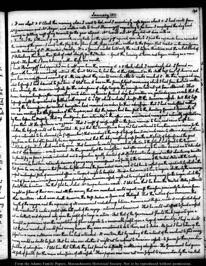 View full, authoritative transcriptions with page images of the diaries at John Quincy Adams Digital Diary part of the Primary Source Cooperative at the MHS.