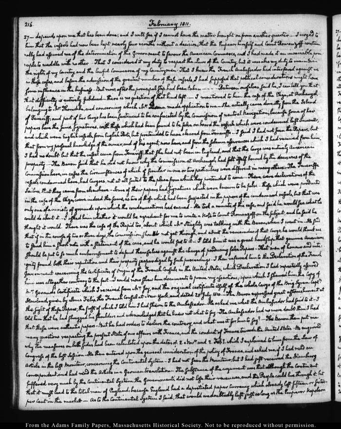 John Quincy Adams diary 28, 5 August 1809 - 31 July 1813, page 216