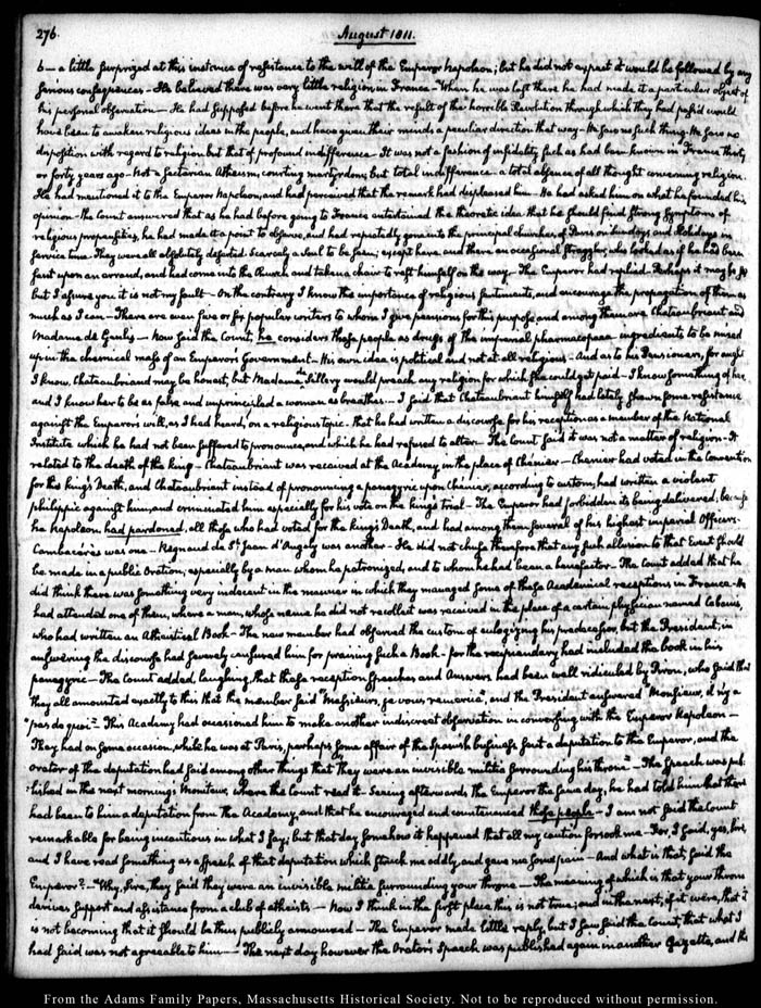 John Quincy Adams diary 28, 5 August 1809 - 31 July 1813, page 276