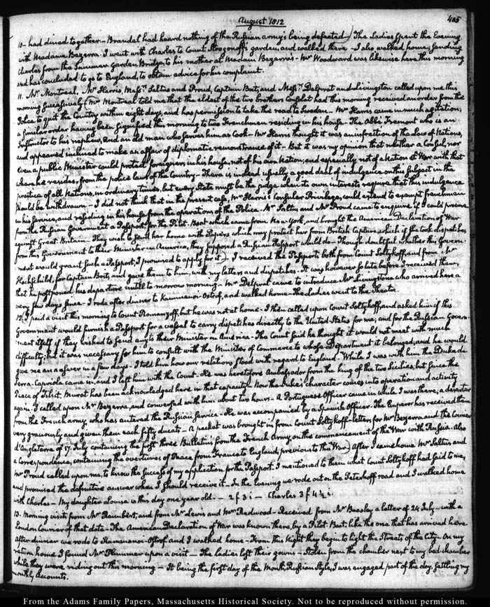 John Quincy Adams diary 28, 5 August 1809 - 31 July 1813, page 405