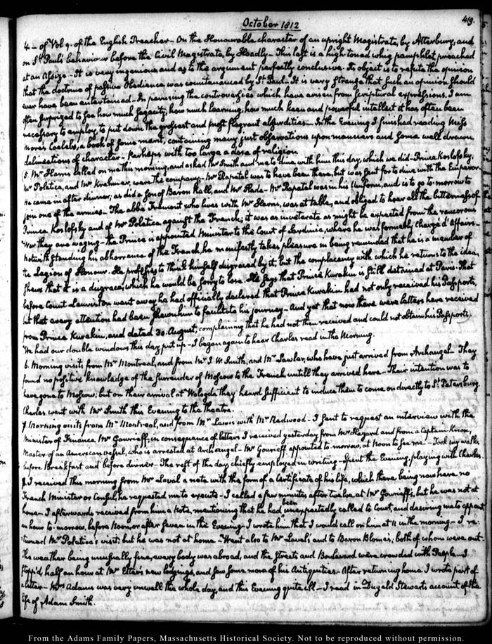 John Quincy Adams diary 28, 5 August 1809 - 31 July 1813, page 419