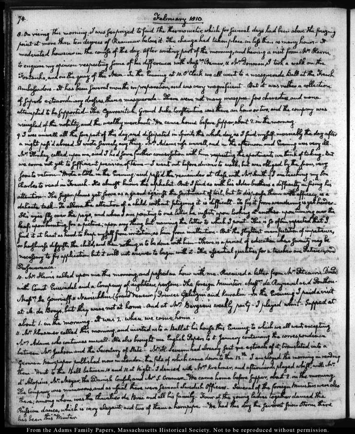 John Quincy Adams diary 28, 5 August 1809 - 31 July 1813, page 74