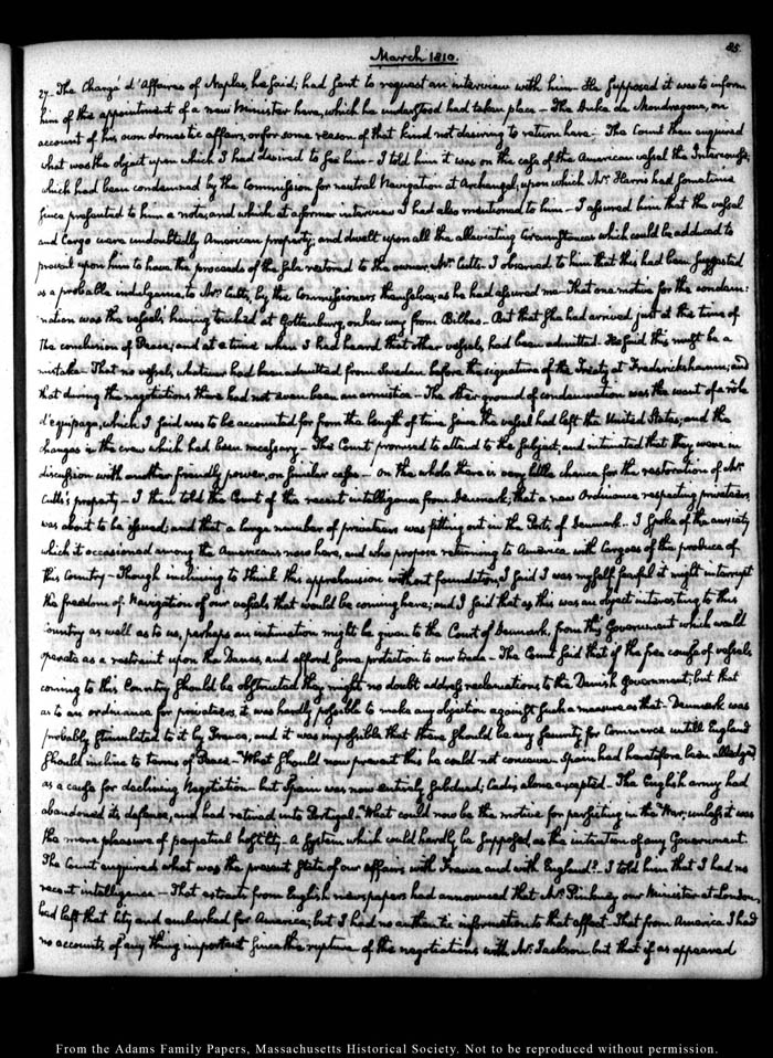 John Quincy Adams diary 28, 5 August 1809 - 31 July 1813, page 85