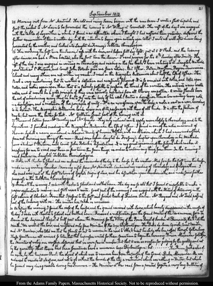 This is our legacy JQA diaries website and allows researchers to view the physical diaries page-by-page.