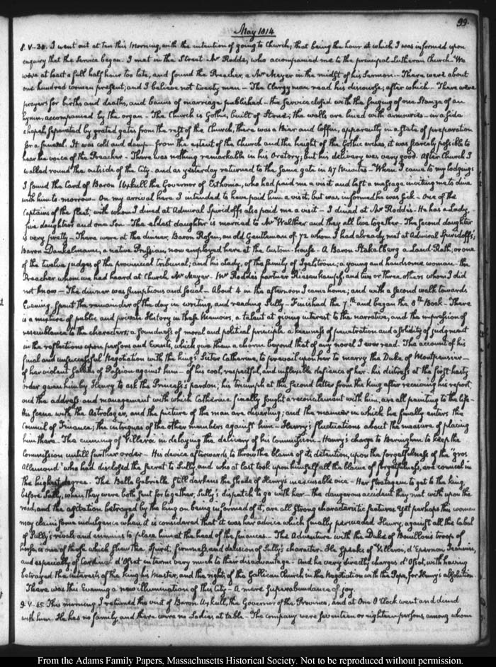 View full, authoritative transcriptions with page images of the diaries at John Quincy Adams Digital Diary part of the Primary Source Cooperative at the MHS.