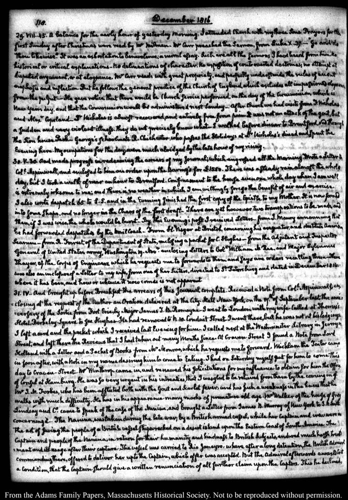 View full, authoritative transcriptions with page images of the diaries at John Quincy Adams Digital Diary part of the Primary Source Cooperative at the MHS.